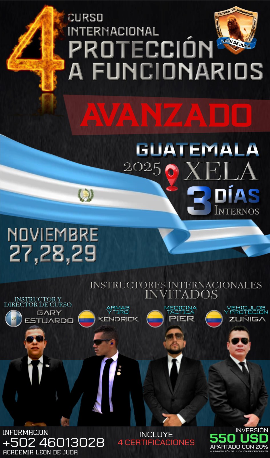 Por eso, el InstructorKendrick, con más de 20 años de experiencia en el campo táctico y operativo, ofrece una formación exclusiva, privada y de alto nivel, diseñada para quienes no se conforman con lo básico.